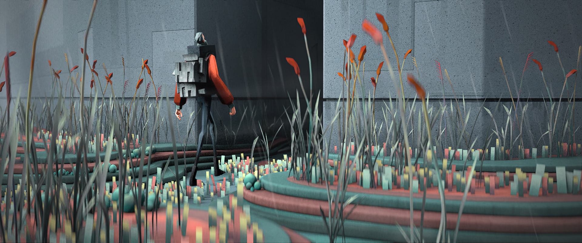 CONCRETE is a 2D/3D mixed short film directed by Aira Joana, Luca Struchen, Nicolas Roth and Pirmin Bieri. The four directors studied together at Lucerne School of Art and Design and graduated with CONCRETE as their diploma film. The four directors found a common interest in brutalist architecture which quite soon became a pivotal element for their further vision. They aimed to evoke an out-of-place feeling and searched for strong visual elements to enhance this mood, which then became an aimless drifter in a vast swamp where the only other trace of life is depicted by wild flora and a mural fox.